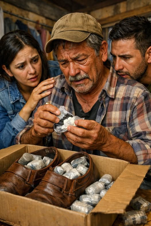 Cada pequeno pacote estava cheio de notas perfeitamente dobradas. Havia tantas que os sapatos ficaram completamente cheios.