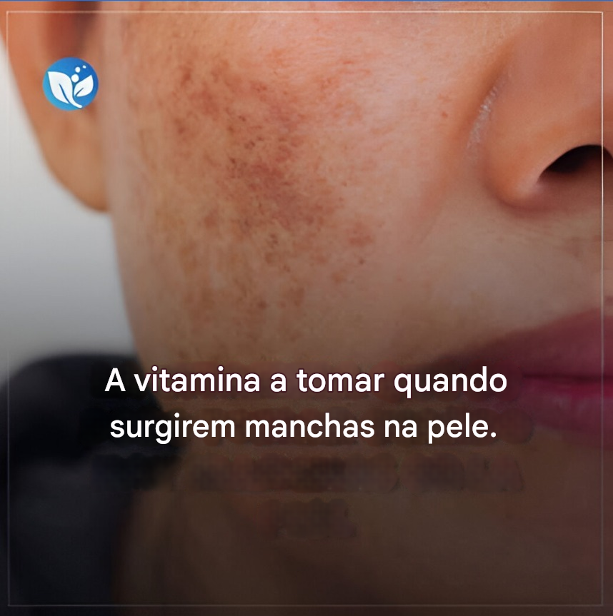 A imagem diz: “A vitamina que você deve tomar quando tiver manchas na pele.”