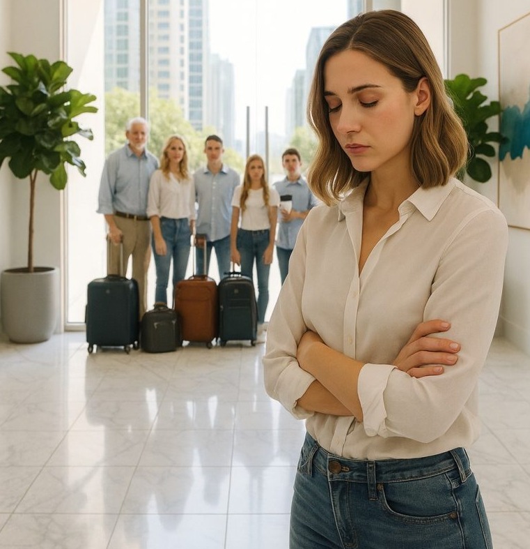 Quando abri a porta, fiquei boquiaberta. Lá fora estava toda a família do meu marido: sua mãe, suas duas irmãs mais novas, seu irmão mais novo e a esposa dele. Todos carregavam malas e bolsas e estavam radiantes de alegria.