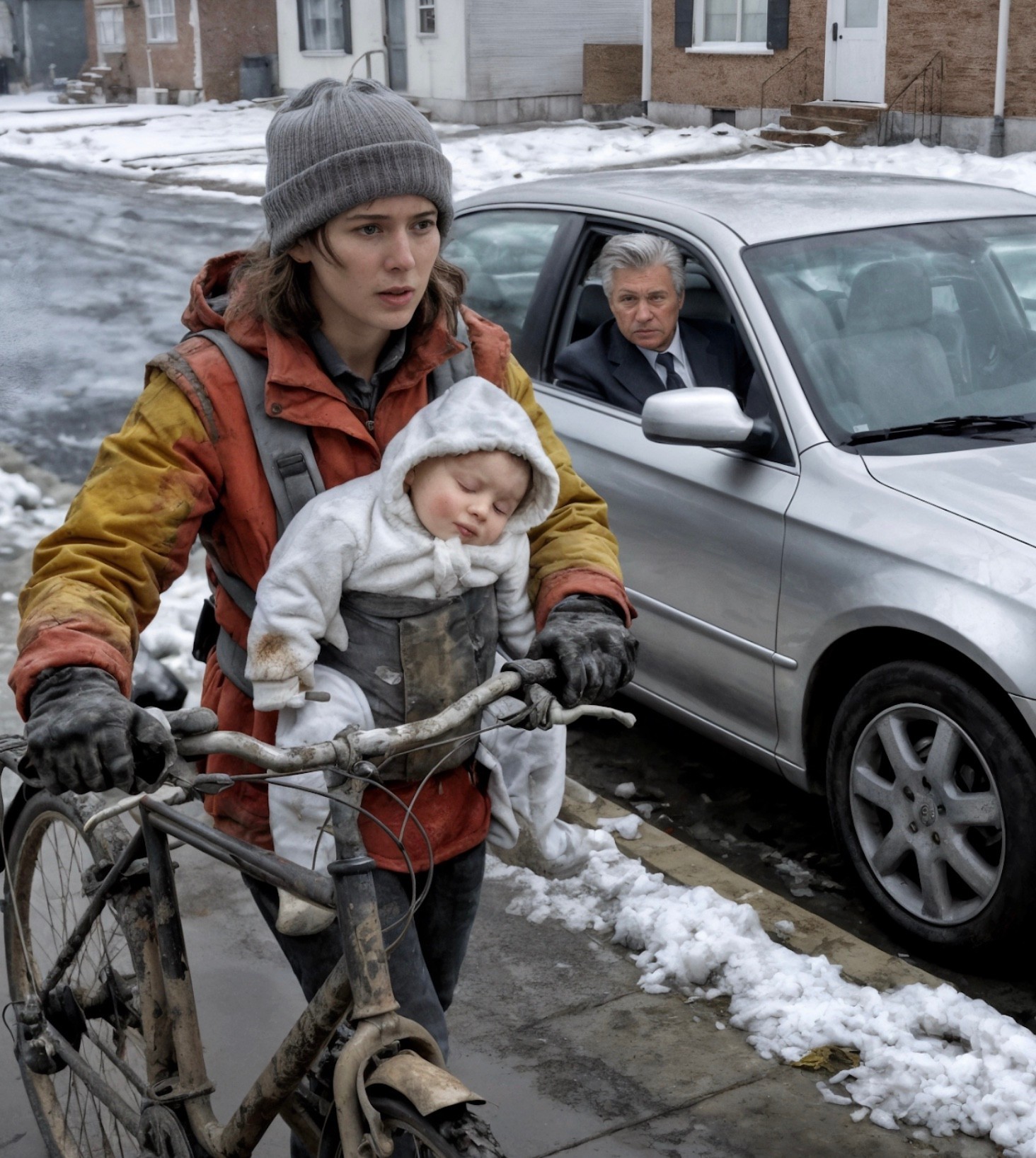 Noah estaba acurrucado contra mí en un portabebés desgastado, comprado de segunda mano, suavizado por meses de ansiedad que no era mía, pero que reconocía. Su carita descansaba sobre mi pecho, tranquilo. Demasiado tranquilo; Ese silencio que te hace preguntarte qué puede sentir un recién nacido cuando el aire a su alrededor se vuelve peligroso.