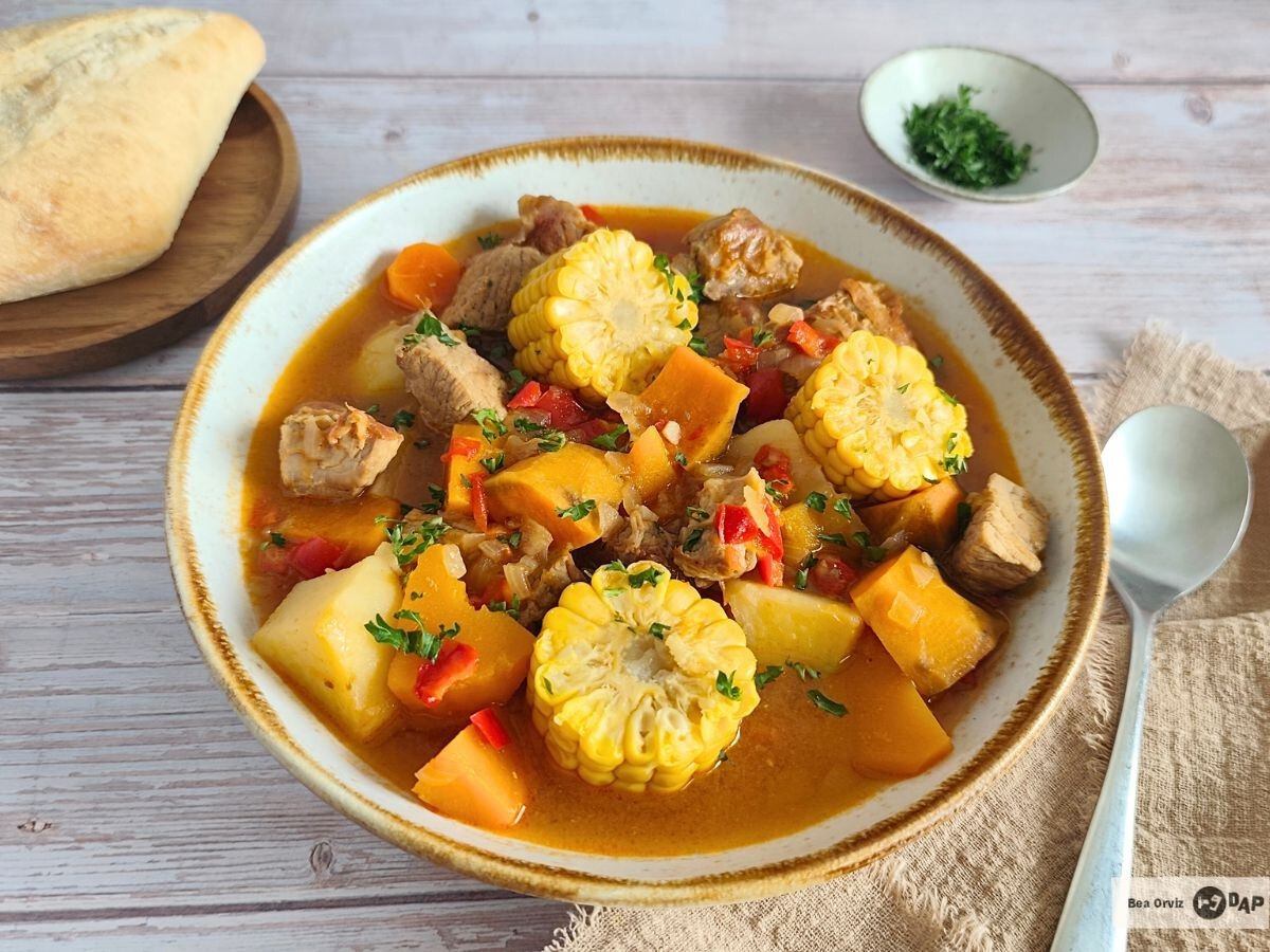 La carbonada es un guiso tradicional argentino, pensado para los días fríos y para comer con cuchara. Su nombre viene de que originalmente se hacía al carbón, a fuego lento y en ollas grandes.