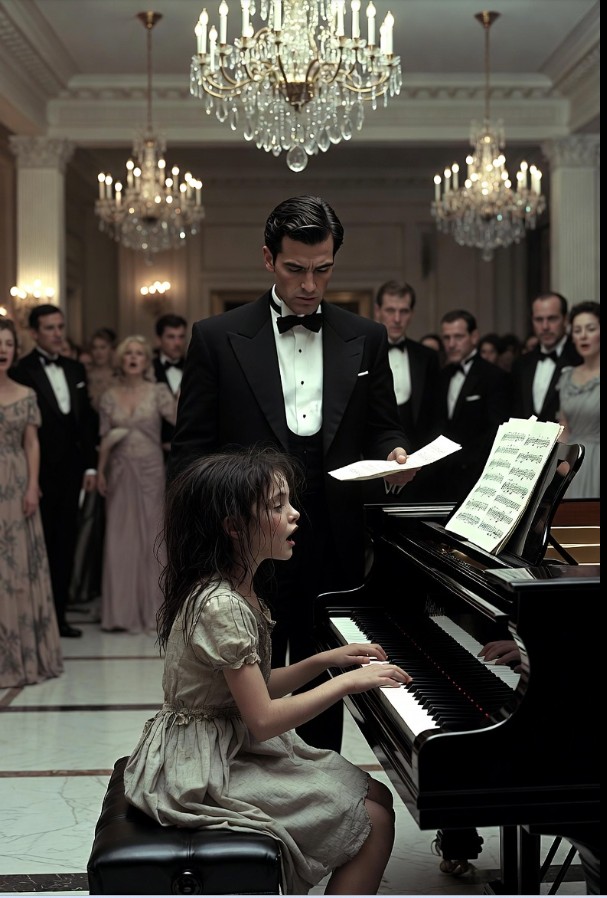 Atrás deles, uma mulher ofegante, Clara, a mãe da criança, tentava abrir caminho pela multidão, com as bochechas ardendo de vergonha e medo. Mas era tarde demais. A menina já havia colocado os dedos nas teclas.