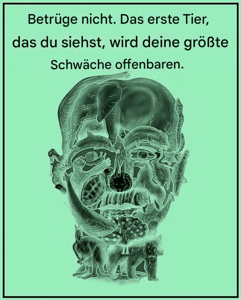 Una imagen con varios animales ocultos circula actualmente en redes sociales, acompañada del siguiente texto: «¡No hagas trampa! El primer animal que veas revelará tu mayor debilidad». A primera vista, la ilustración parece la silueta de un rostro humano, pero oculta varias figuras de animales superpuestas. Este tipo de acertijos visuales son muy populares porque despiertan la curiosidad y generan debates sobre si realmente reflejan los rasgos de la personalidad del espectador.
