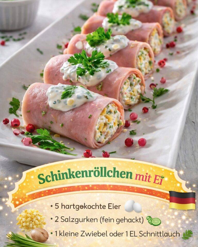¡Este Schinkenröllchen mit Ei sind immer sofort weg!