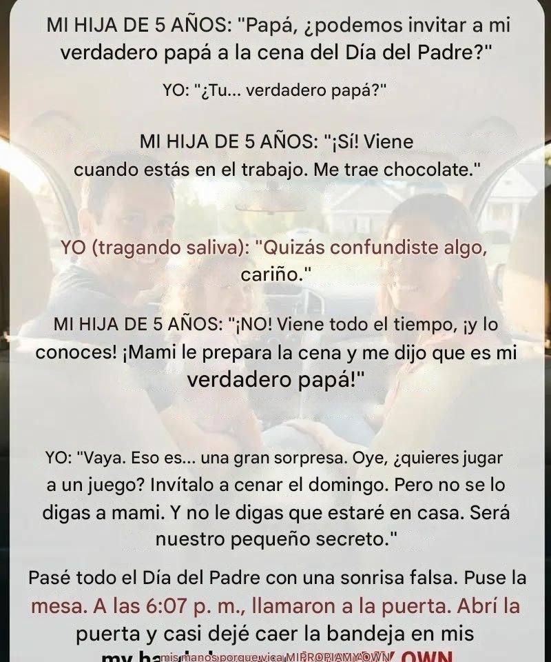 No dejé que el pánico se manifestara. No dejé que la ira me dominara. Lo convertí en un "juego de cena sorpresa" para el Día del Padre, dándole una forma de hablar libremente y dándome a mí una forma tranquila de recopilar pistas. Le encantó la idea, emocionada de convertir sus pensamientos en una misión. Mientras tanto, una fría pesadez se formó en mi pecho: el instinto de que algo estaba sucediendo justo debajo de mis narices.