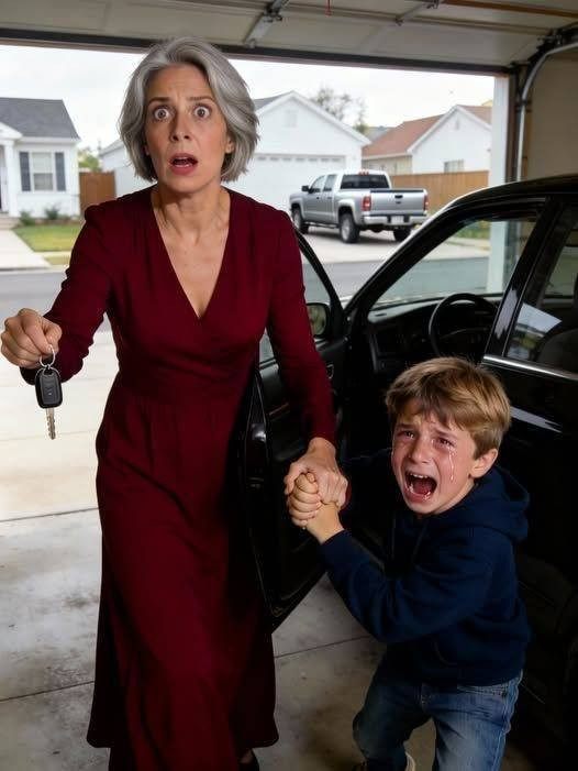 Acababa de abrir la puerta del coche cuando la puerta del garaje se cerró de golpe contra la pared. Su nieto, Lucas, entró corriendo, pálido y con la respiración entrecortada.