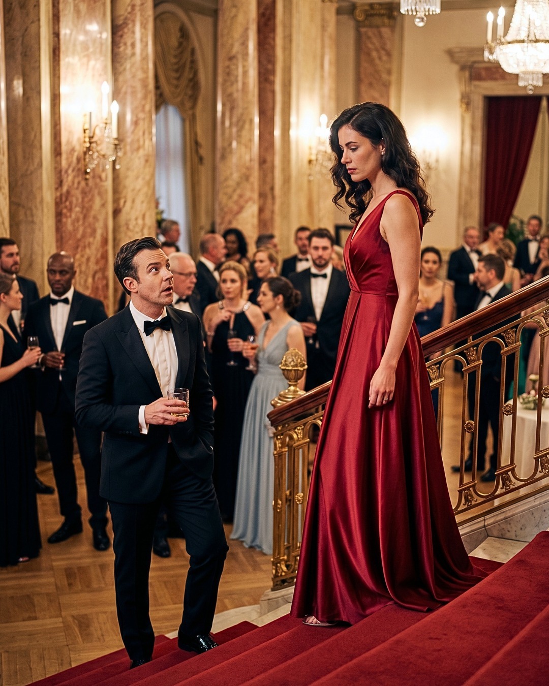 Arañas de cristal proyectaban una cálida luz dorada sobre los suelos de mármol, y el aire se impregnaba de una suave mezcla de perfumes caros y champán. Risas, el tintineo de las copas y discretos acuerdos llenaban cada rincón de la sala.