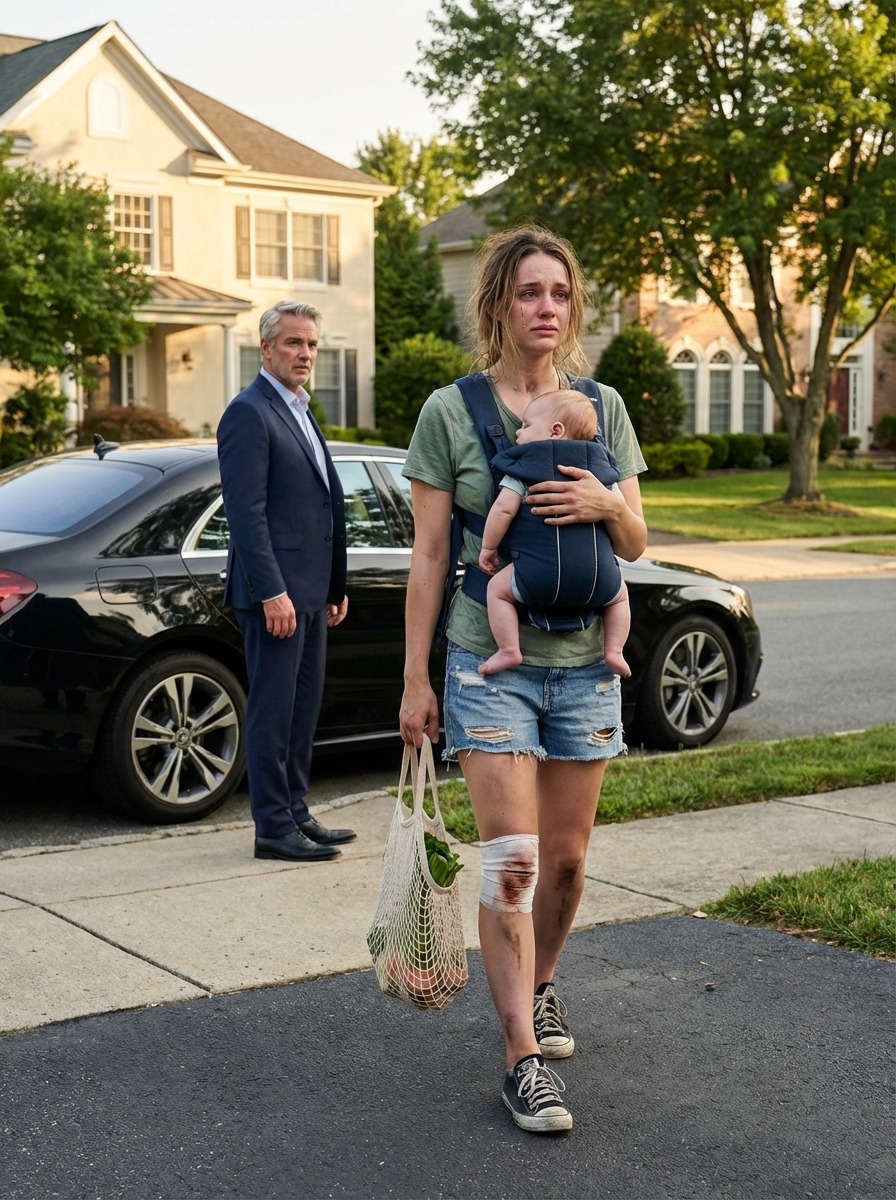 “Onde está seu carro?” A voz do meu pai era gélida enquanto ele olhava para meu tornozelo inchado e roxo e para as pesadas sacolas de compras que eu arrastava enquanto segurava meu bebê. Sussurrei a verdade: que minha sogra havia pegado minhas chaves para me manter presa. Ele não gritou. Simplesmente abriu a porta e disse: “Entre. Esta noite, resolveremos isso.” Eles não faziam ideia de quem meu pai realmente era — até ele chegar.
