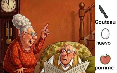 Anuncio Encuentra un cuchillo, un huevo, una manzana y un plátano.