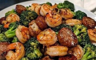 INGREDIENTES: 1 libra de camarones, pelados y desvenados 8 oz de salchicha ahumada, en rodajas 2 tazas de floretes de…