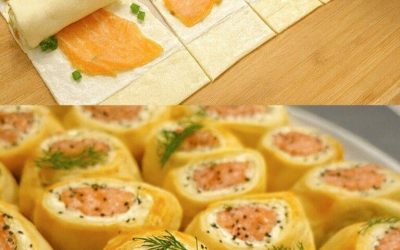 Rollitos de hojaldre con salmón ahumado: ¡Tan deliciosos que querrás preparar dos la próxima vez! Ingredientes: 1 paquete de hojaldre…
