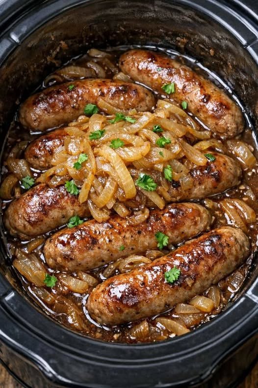 Este prato de salsichas com cebola é um clássico aconchegante de inspiração britânica: salsichas suculentas cozidas lentamente com cebolas caramelizadas em um molho rico e saboroso. Com apenas quatro ingredientes simples e uma panela elétrica, oferece um sabor profundo e reconfortante sem nenhum trabalho manual.