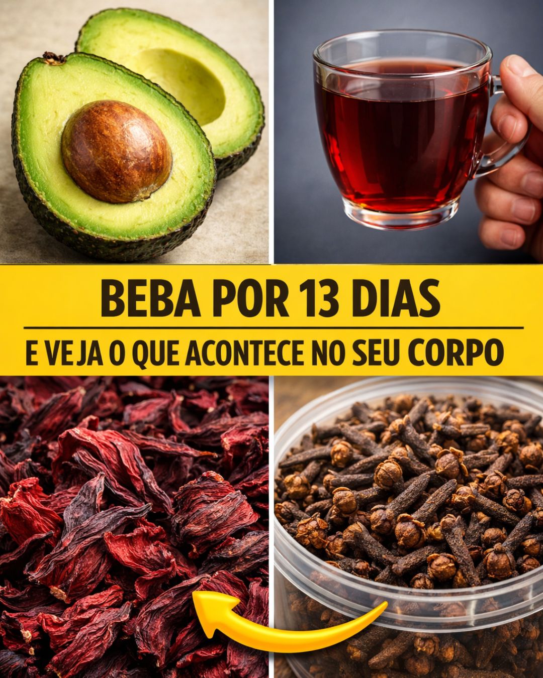 É composto por flor de hibisco, cravo-da-índia e semente de abacate , três ingredientes que juntos ajudam a purificar o sangue, equilibrar a pressão arterial, reduzir o açúcar no sangue, diminuir a inflamação no corpo e fortalecer o coração e as veias .