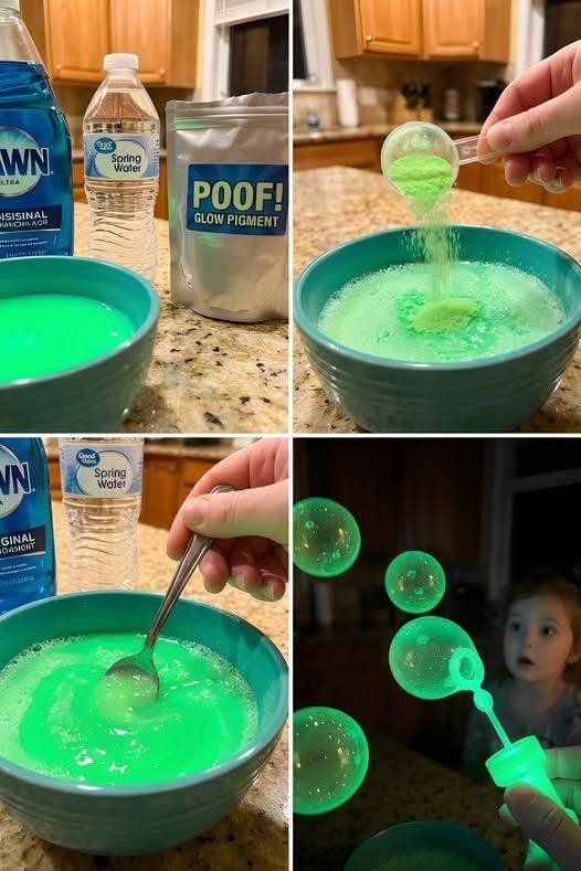Imagina ver burbujas flotando en una habitación oscura, cada una brillando con un verde intenso y etéreo: suaves orbes de luz que se desplazan y giran antes de estallar en una silenciosa explosión de color. Parece sacado de una película de ciencia ficción. En realidad, es algo que puedes preparar en tu cocina en unos quince minutos.