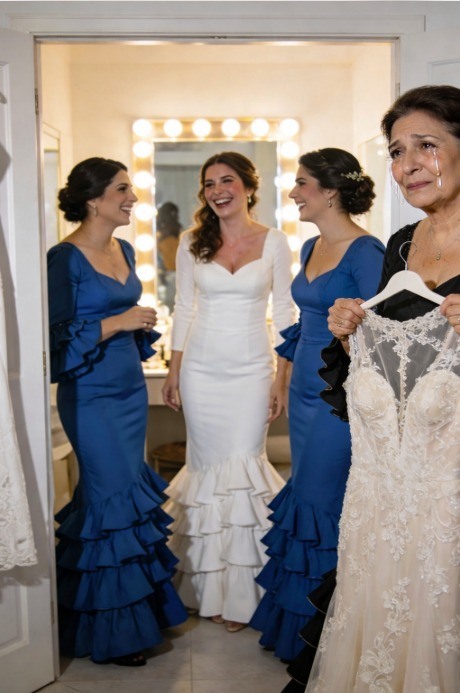 Cuando llegó el momento de vestirla, apareció una estilista profesional con un vestido nuevo, recién salido de una capa de satén. Blanco puro, estilo sirena, con bordados brillantes. Nada que ver con mi creación. Mi hija evitó mirarme, y supe que mi vestido jamás tocaría su piel.